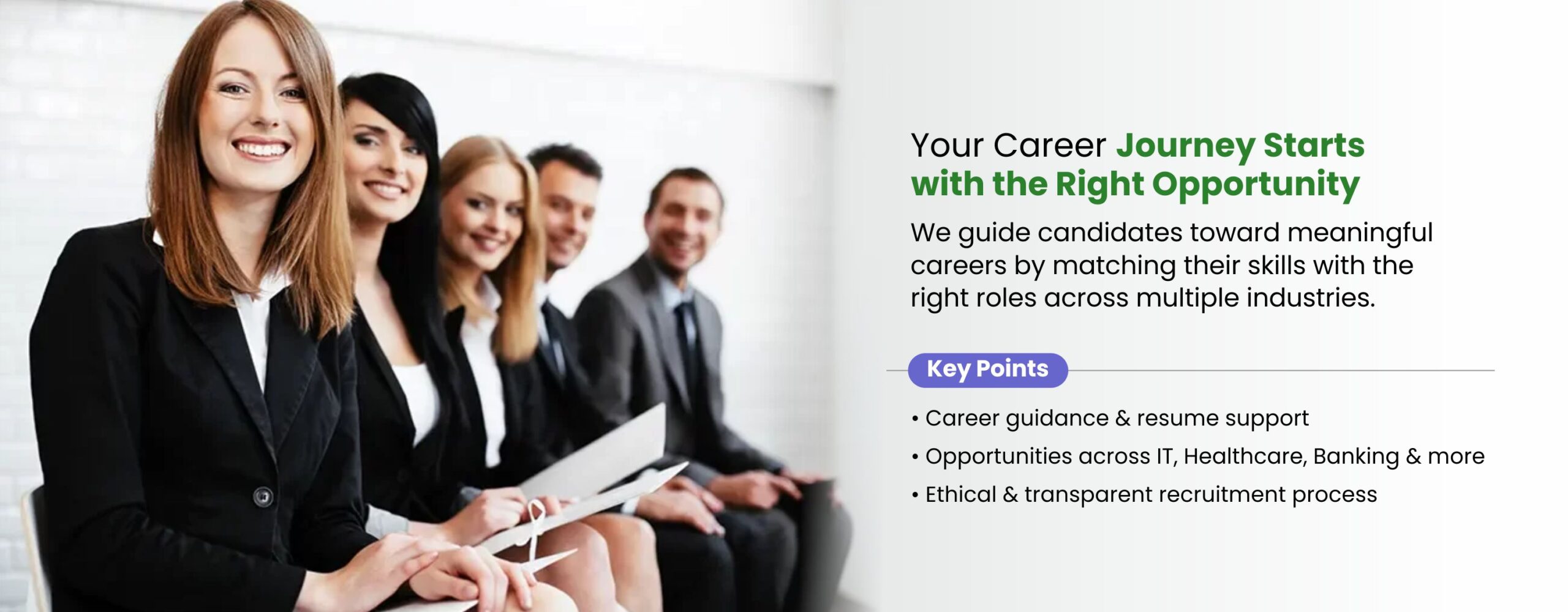 We serve a wide range of industries such as IT & ITES, healthcare, banking & finance, telecom, education, retail, FMCG, and other growing sectors, providing industry-specific recruitment expertise.